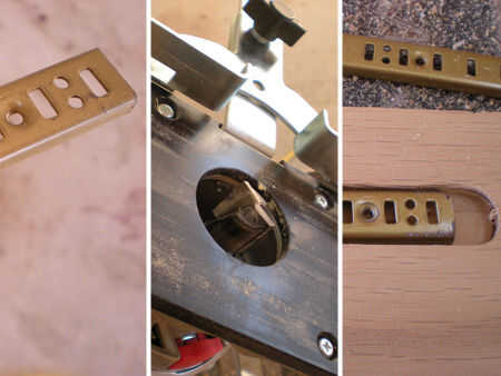 Para esta tarea hemos creado nuestra fresadora con un 3/4" Guía de broca recta y lateral accesorio. Tenemos la ranura donde queríamos que utilizando un pequeño pedazo de chatarra para alinear la guía y la broca para ejecutar un 3/8 "ranura aproximadamente dos pulgadas desde el lado en el interior - aunque lo que parece y se siente bien te funcionará muy bien. Una rápida prueba de ajuste de nuestros rieles poner nuestra mente en la facilidad; habíamos conseguido la derecha ancho y la altura de los rieles, y los tornillos que los fijan no van a sobresalen de las ranuras y jugar estrago con los estantes extraíbles.