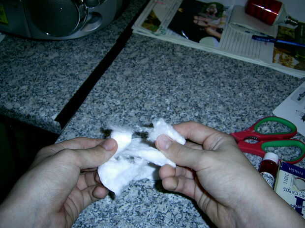 Tomar las pastillas o bolas de algodón y rasgar en pequeñas pelusas.