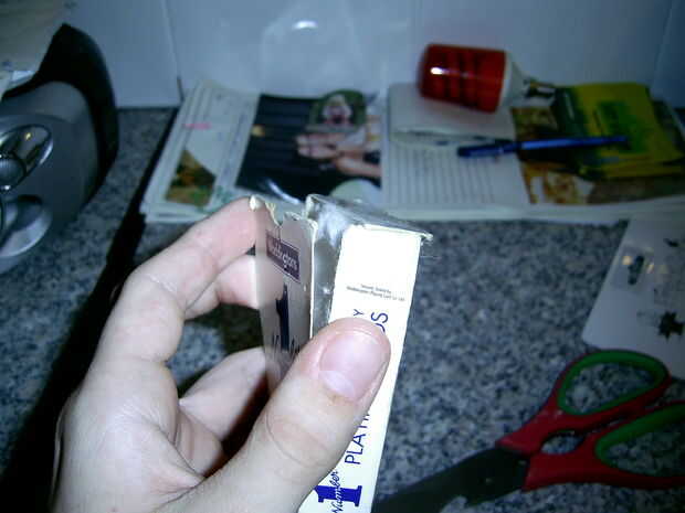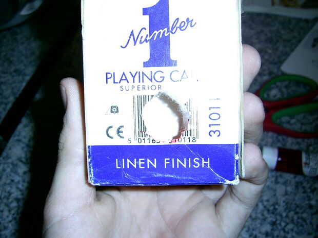 después de hacer esto, corte un agujero del tamaño de su dedo en la parte inferior de la caja en la parte inferior. (segunda foto).