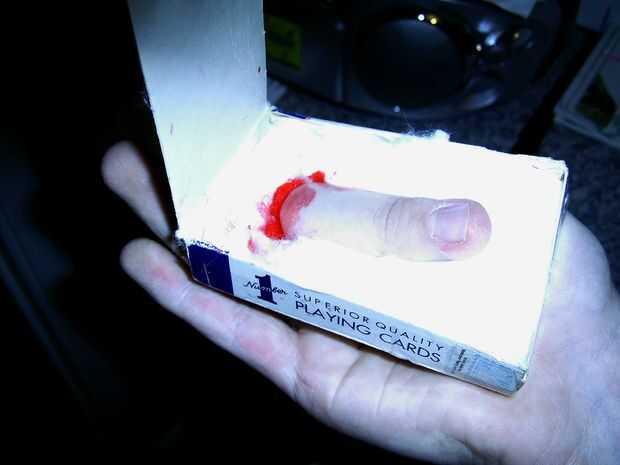 te muestro cómo hacer un falso dedo realista cortado con un pedazo de chicle y algunos maquillajeTe hace falta:-maquillaje de tono de la piel-pieza de suave chicle-maquillaje azul, rojo, negro-cuchillo de mantequillaEste video muestra cómo aplicar el