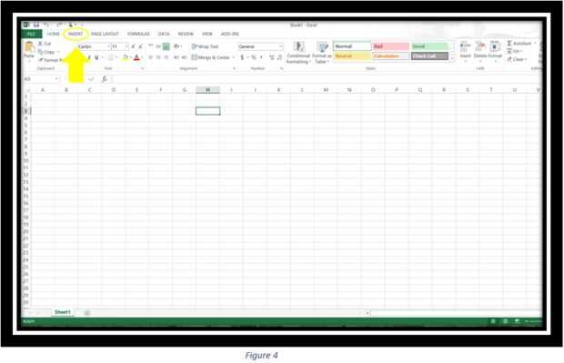 En la pantalla que está actualmente en, seleccione la ficha "Insertar". Esto se destaca para usted en la figura 4.