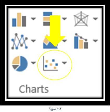 En la sección de "Cartas" de su nueva barra de herramientas, haga clic en el diagrama de dispersión que se destaca en la figura 6.