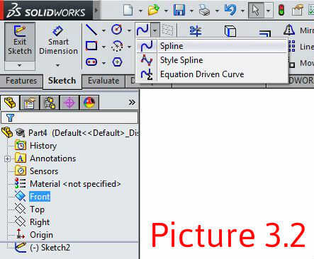 Seleccione "Spline" como método de dibujo (como se ve en el cuadro 3.2). Spline le permitirá esbozar el corte transversal de la turbina con sólo tres puntos.