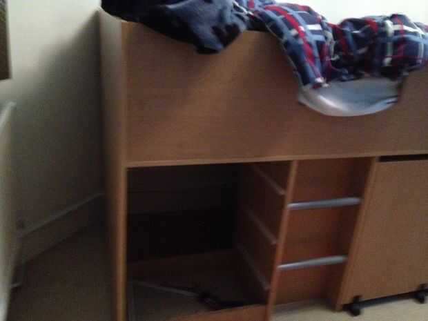 convertí dibuja desde su cama de la cabina en a un mini armario.