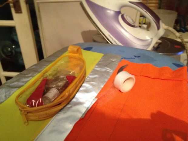 - Poner los pantalones en una tabla de planchar bajo algo como una toalla de té y empezar a planchar las piernas de pantalón. La toalla dejará el WonderWeb queme lo reutilizable que.