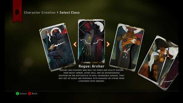 Nota: Usted notará que hay dos opciones disponibles para el warrior y rogue durante la selección, destacando los tipos de armas diferentes para cada clase. Mientras que los árboles de habilidad, armas y armaduras son las mismas para cada selección de la misma clase, su primer arma y habilidades serán diferente.