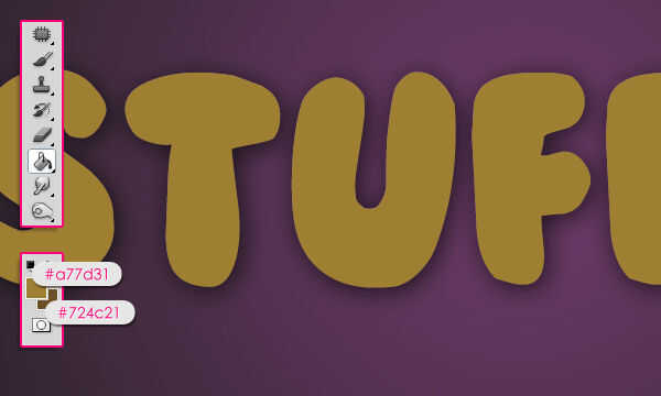 Establecer el color de primer plano a #a77d31 y el color de fondo a #724 c 21, rellenar la selección con el color de primer plano y pulse Ctrl + D (Select -> deseleccionar) para deshacerse de la selección.