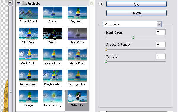 A continuación, vaya a filtro > artístico > Acuarela: