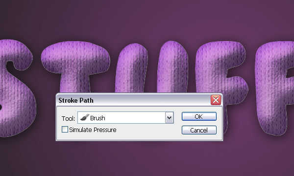 Haga clic derecho sobre la capa de texto y elija crear trazado de trabajo. Seleccione la capa "puntadas" otra vez para que sea la capa activa.