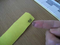 Usando una frotación de lápiz de la HB en algún papel abrasivo de grano grueso 40-60 por lo que el conductor aparece como partículas en él.