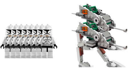 Abrir todos tus conjuntos y separa todos tus clones de pedazos de clon walker. No necesita juntar los caminantes clon, sólo hay que poner las piezas de cada caminante clon en una bolsa zip separado junto con las instrucciones.