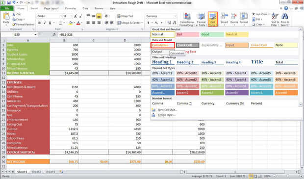 III. formato de células B30-F30 seleccionando todos y haga clic en "Estilos de celda" situado en la barra de herramientas y luego "Cálculo".
