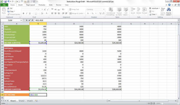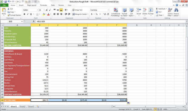 II. ahora, utilice la función de Autorrelleno para completar los totales por fila 30 (de la columna B a través de la columna F).