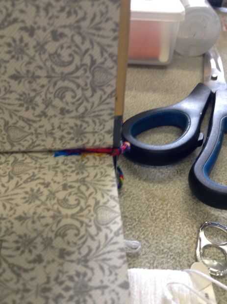 Tie off la trenza, pero asegúrese de que el nudo se coloca debajo del libro para que puedan cerrar completamente, luego pegamento el extremo corto de borlas entre el interior de la tapa y la primera página.
