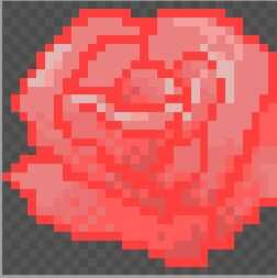 Este paso es, obviamente fundamental en la creación de la animación; Dibujo la primera imagen. Es, por supuesto, depende de ti cómo y qué decides dibujar tu imagen (en este ejemplo, una rosa), pero es importante tener en cuenta las diferencias entre el pixel art y dibujo más tradicional. Arte pixel está conformada enteramente píxeles cuadrados, por lo que es imposible crear una verdadera curva. Sin embargo, puede crear la ilusión de curvatura mediante la colocación de los píxeles.