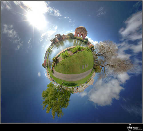 Los pasos para crear uno de estas imágenes son los siguientes · Dispara entre corchetes 360 grados por 180 grados panorama · Proceso solo entre corchetes fotos para HDR. · Mapa de tono al gusto. · Proceso por lotes todas las fotos para obtener tono individual asignan resultados · Tono de fusión foto asigna imágenes a panorama · Nivel y recortar la imagen a 360° · Fijar el tamaño equirectangular proporciones · Deformar la imagen en un PanoPlanet (Panorama Polar) · Imagen de limpieza