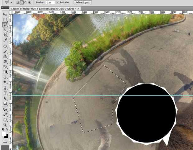 Ahora hay unas cosas para limpiar. Principalmente el gran hoyo enorme en el centro del planeta y la costura necesita a menudo borrosa. Utilizo dos técnicas principales para estos. En primer lugar la costura, creo que la mejor forma de mezclar que es usar la herramienta parche con la herramienta parche en fuente Seleccione un parche que incluye la línea de combinación, arrastre el cursor en alguna zona limpia que es similar. Mantenga repitiendo este; No trate de captar demasiada área en un solo parche Mantenga los parches pequeños y sólo parche de contenido similar. Una vez que han mezclado la Unión que completamente podemos limpiar el agujero en el medio. Para rellenar el agujero en el medio utilizo la herramienta lazo. Voy a seleccionar zonas de cada lado del agujero y copia y pegar los parches para nuevas capas. Luego les deslice sobre el agujero. Hacer esto varias veces hasta que el agujero es más obscuro. Entonces el truco es mezclar los bordes usando una máscara de capa una vez totalmente haya rellenado el agujero con parches probablemente parece un lío. En este punto puede ocultar el parche individual capas una por una luego cambiar el tamaño y los parches para mejor se alinee con el orificio de la deformación. Usted definitivamente quiere los parches para ser más grande que los agujeros como el siguiente paso es mezclar los bordes usando una máscara de capa y un cepillo suave ocultar todas las capas de parche y mostrar sólo la capa del parche inferior añadir una máscara de capa. Asegúrese de que la máscara de capa es blanco mostrar a través de la imagen. Seleccione un cepillo de plumas y pintura en Inicio negro para mezclar a los bordes. Una vez que esté relativamente feliz con su mezcla que puede acoplar todas las capas luego retoque con la herramienta parche. En este punto es completo su panorama HDR PanoPlanet o Polar
