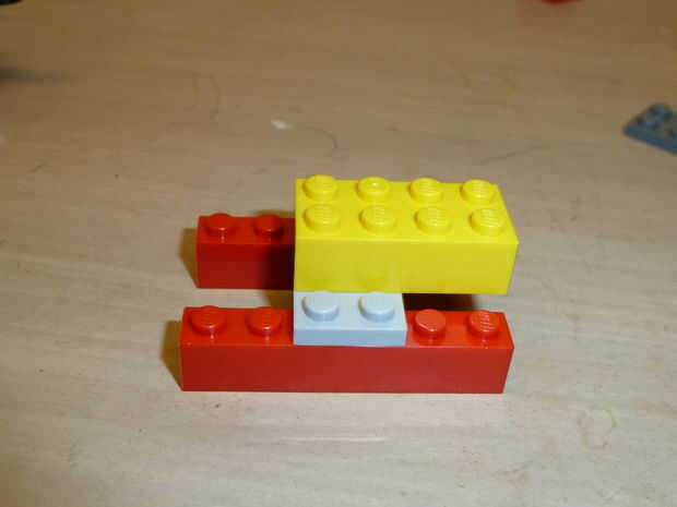 Para la parte del cuerpo, necesitamos 2 x 4 lego conectar por encima del fino lego 2 x 4