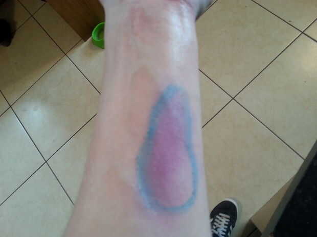 Tomar el color verdoso de la sombra de ojos y trace una línea alrededor de la herida y en mancha. Puede Agregar manchas de negro, gris o marrón en diferentes áreas de la contusión para agregar algún efecto. Solo juego alrededor con los colores hasta encontrar el efecto que busca.