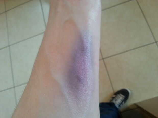 -el hematoma va un redsish de color al principio básicamente justo después de que has estado kicked..:/