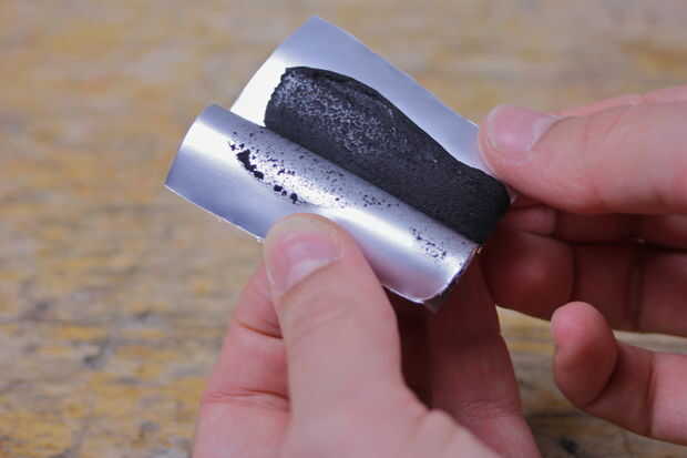 Abrir el sugru y retire la lámina. Amasa entre los dedos, agregar una pequeña gota de negro en el paquete de blancos para conseguir un liso color gris. Mantener la mezcla para aproximadamente un minuto hasta que los colores se mezclan completamente.
