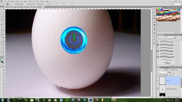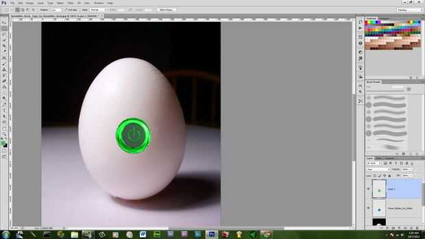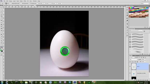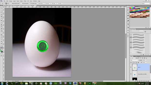 Crear una nueva capa sobre el botón de encendido, cambie su modo de mezcla a color, escoger el color de su elección utilicé color código 39b54a, y zoom con un pequeño cepillo redondo duro y color en el azul para dar el verde quiero. TIP: (mantenga CTRL y haga clic en el capa con el botón de encendido luego ir a la nueva capa para evitar derrames en los bordes). Entonces un pincel redondo con una opacidad de aproximadamente 30% - 20% y circulan por el leve resplandor a cambio del resplandor.