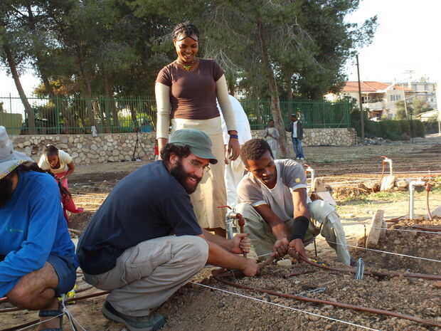 soy una de muchos voluntarios en las raíces de la hierba, organización sin fines de lucro, promesa de la tierra. Este año hemos creado un jardín orgánico comunitario con la comunidad etíope de Beer Sheva, Israel. Nuestro jardín se llama el jardín de la comunidad del "Edificio fuertes raíces", ubicado en el barrio de Gimmel de Beer Sheva.