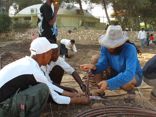 Israel, junto con el resto de Oriente Medio, es una tierra plagada de una crisis de agua. Uno de los principales objetivos era crear un jardín que como poca agua como sea posible. Después se construyeron las camas que instalamos líneas de riego por goteo. Estas líneas de goteo están diseñadas para entregar una cantidad fija de agua directamente a las raíces de la planta. Estamos muy emocionados porque el fabricante, Netafim, ha invitado a todos a visitar la fábrica. Para obtener más información acerca de la tecnología puede visitar su web: