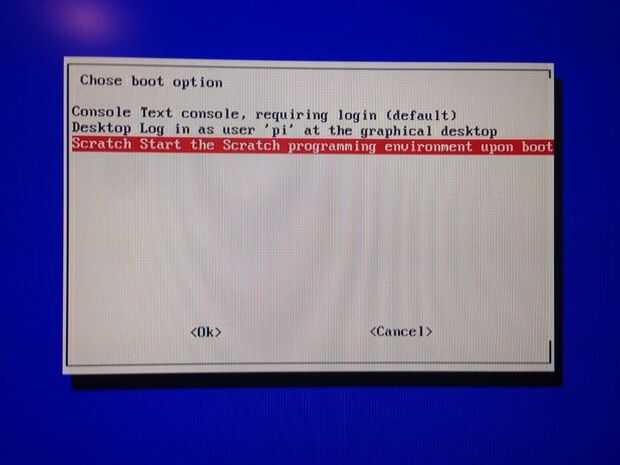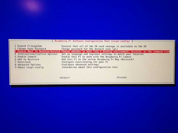 Se puede saber la frambuesa Pi para arrancar en cero directamente cada vez que se enciende mediante el menú config raspi que aparece en el primer arranque (como se muestra). Una vez que has hecho para seleccionar termina y luego acepta la petición de reinicio. Si arranque en cero la pantalla puede ser en blanco para comenzar con - simplemente pulse cualquier tecla para despertarla.