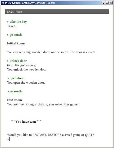 OK, la fuente está casi completa. Llamar al archivo "compile.bat" para actualizar mygame.z5. Abrir con gárgola. prueba los siguientes comandos: