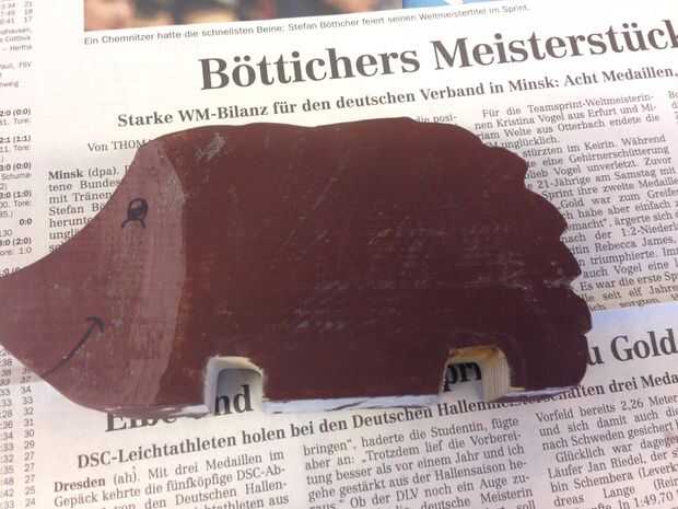 Para ello tienes que dibujar los cuadritos (lo suficientemente grandes para caber los ejes a través de) en la parte inferior del erizo. Para esto tenga cuidado de que la Plaza es bastante grande, por lo que los ejes pueden moverse; pero no demasiado grande, desde entonces puede parecer extraño si las ruedas se mueven hacia adelante y hacia atrás en la parte inferior del juguete.