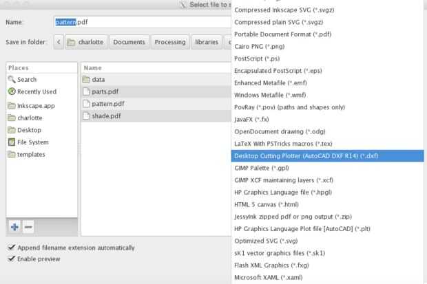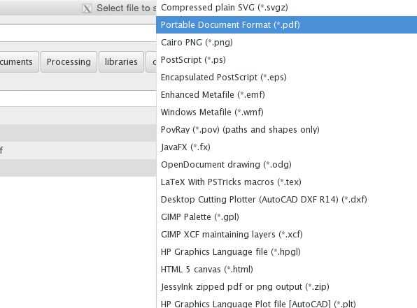 Después de hacer el diseño que desea, necesita convertir a Inkscape. Presione guardar botón en procesamiento y abrir Inkscape. (Puede que necesite fuerza salga de la aplicación y abrirlo de nuevo) En la ficha archivo, haga clic en abrir y seleccione el archivo en la carpeta de proceso. Elija el archivo pattern.pdf, su diseño debe mostrar la sombra de la lámpara que desea hacer. El diseño probablemente no cabrá en la caja. Si no, Lee los siguientes pasos, si lo hace, saltarla.