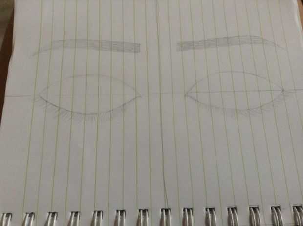 (En el ojo izquierdo, las pestañas deben empezar a cara derecha y luego moverse a la izquierda)