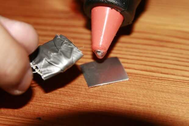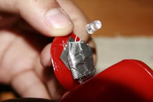 Pegar el LED/batería a la pieza de metal y luego dentro de los peces.