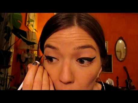 Dibuje su ojo de gato. Usé un negro Almay líquido trazador de líneas para dibujar una línea gruesa a través de mis pestañas superior, que luego de extendió a un punto más allá del borde de mi ceja natural.