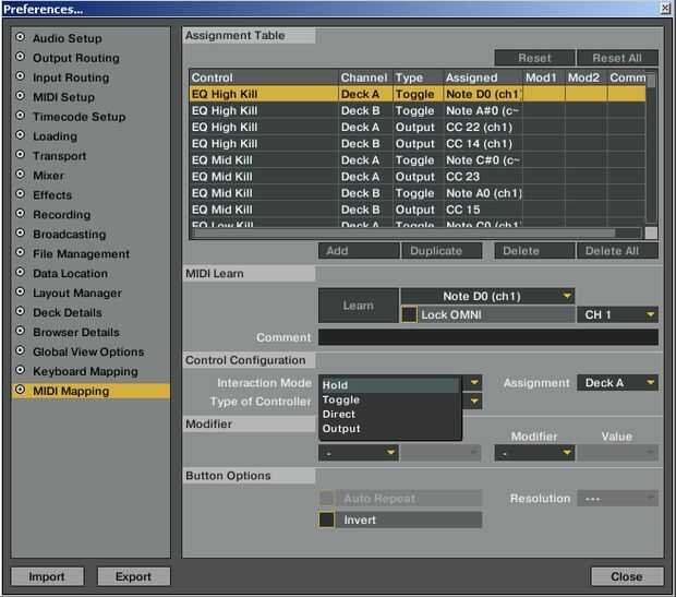 -Directa: utilizado para seleccionar fader, perillas y quiebros.