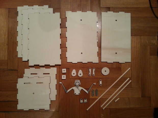 En la primera vez todas las piezas se basó en CAD y guardar como un archivo DXF 2004. Después de entonces tengo mi archivo en la máquina de lasercut que dibujó las piezas del juguete en una hoja de cartón de 5mm.