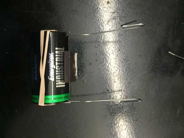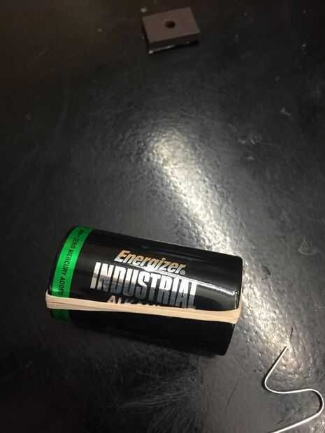 Fuentes:Batería D2 clipsAlambre de cobreelásticoPapel de lijaTijerasPaso 1: instrucciones Reúna los suministrosCorte aproximadamente 25 pulgadas de alambre de cobre con unas tijerasCable de bobina alrededor de la batería dejando aproximadamente 2 pul