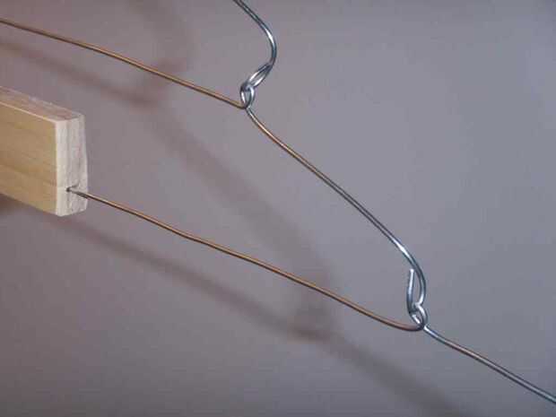 Desenganche el brazo de la herramienta y mantenerla junto a la herramienta para determinar donde usted tiene que hacer el lazo en este brazo. Hacer el lazo, póngale un trozo de madera en el brazo y el brazo del gancho en el alambre base, entonces tomar la herramienta y gancho en lazo de brazo y consultar el saldo. Puede ajustarlo acortando el alambre, doblarlo hacia abajo un poco o incluso remodelando el brazo y colocando el lazo diferente. Cambiar el peso de la pieza de madera es posible, también.