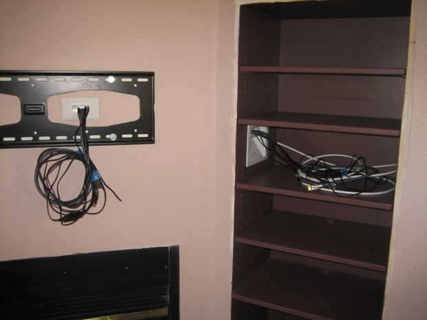 Corrí los cables (HDMI, cables de altavoces, potencia) a través de la pared y en el muelle de Audio (fotos de cheque).