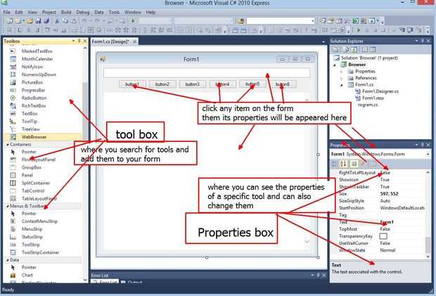 Ahora tiene 6 botones de la caja de herramientas y 1 control de explorador web y 1 cuadro de texto!