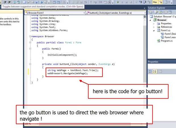 Im que va a enseñar cómo hacer un navegador web en Visual Basic 2005.Paso 1: a partir de Abierto Visual Basic y empezar una nueva aplicación de Windows.Paso 2: Agregar las herramientas de Añadir a:Cuadro de textoNavegador web5 botonesen ese orden.Pas