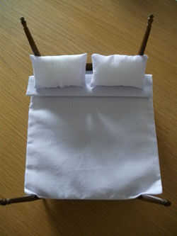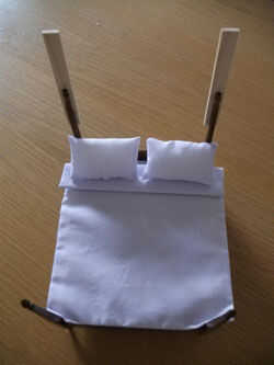 Una vez que medí la altura de la habitación que corté dos pedazos de madera longitud 5995. Entonces pegué a los puestos de cabeza de la cama usando una pistola de pegamento caliente.