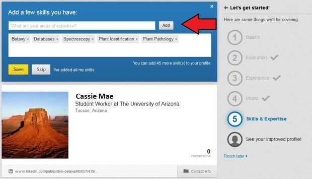 i. seleccionar el botón "añadir" azul después de cada habilidad o experiencia que se añade