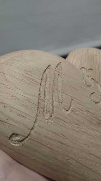Cuando la forma es agradable y suave, dibuja las letras en el ingenio madera de un lápiz. He elegido el mismo lettertype como fue utilizado en la inventation de la boda. Para tallar las letras he utilizado dos nives de tallado en madera. Más importante es que cortan los nives! Las letras no tienen que ser tallado profundo, aprox. 1 mm es lo suficientemente profundo.