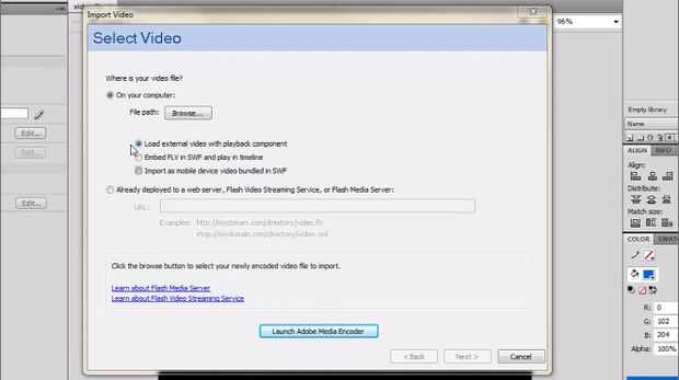 Importar el vídeo. En la ventana "Importar vídeo", haga clic en "Examinar". Para restringir vídeos codificados en Flash, seleccione "Vídeo para Adobe Flash" en el menú desplegable "Video todos los formatos". Entonces, encontrar el video que a codificado y haga clic en "Abrir". Ahora, haga clic en "Siguiente".