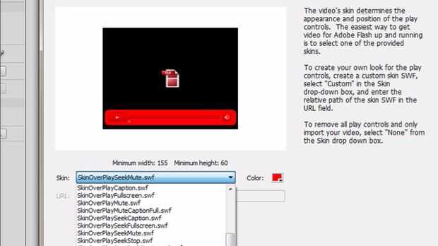 Cambiar la apariencia de los controles de vídeo seleccionando otra opción en el menú desplegable de pieles. También puede cambiar el color de los controles de esta página. Haga clic en "Siguiente" y luego "finalizar" para completar la importación del vídeo.