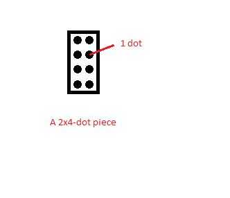 El tamaño de las piezas necesarias se describirán mediante "puntos." Piezas tienen diferentes cantidad de puntos que forman filas y columnas. El siguiente diagrama muestra una pieza de 2 x 4-dot. Cuenta con 2 columnas y 4 filas. Algunas piezas pueden tener puntos de 2 x 6 o 1 x 4 puntos.