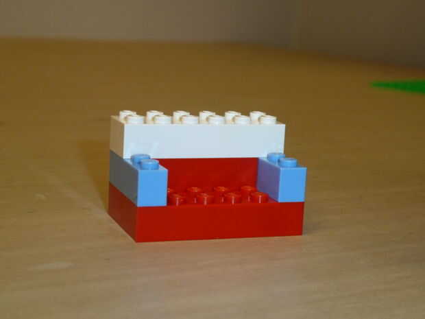 A continuación tomar una pieza de 2 x 4-dot y coloque en el centro del borde superior de 6 puntos entre las piezas de 1 x 4.
