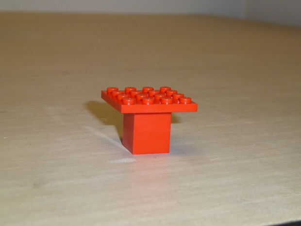 Tomar una pieza plana de 4 x 4 y centro en la cima de la pila de 2 x 2.